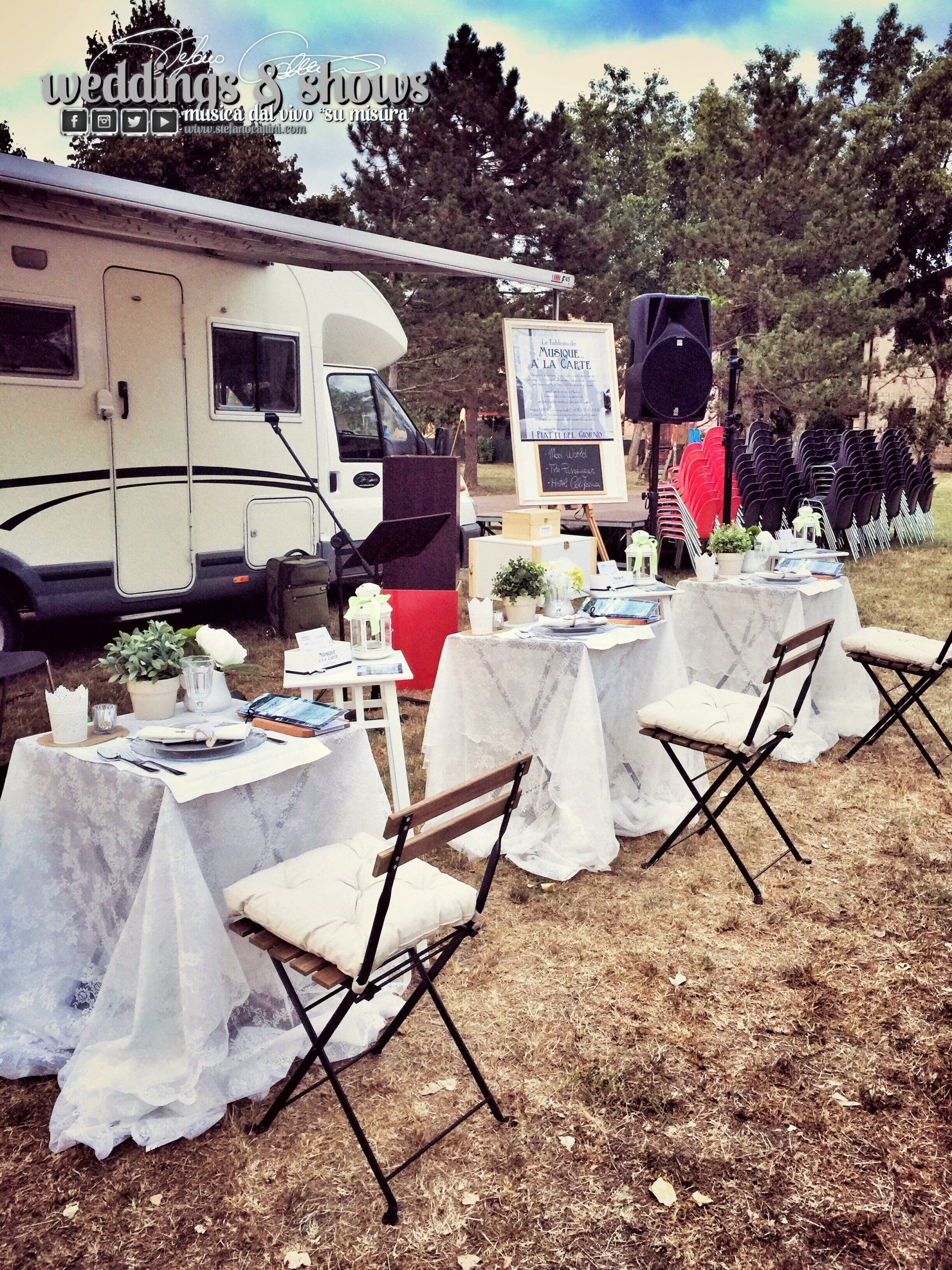In this case the show includes an audience of chairs, without support tables; so we will set up workstations in front of the stage, where people will be able to sit and comfortably browse the menu by making their requests.
