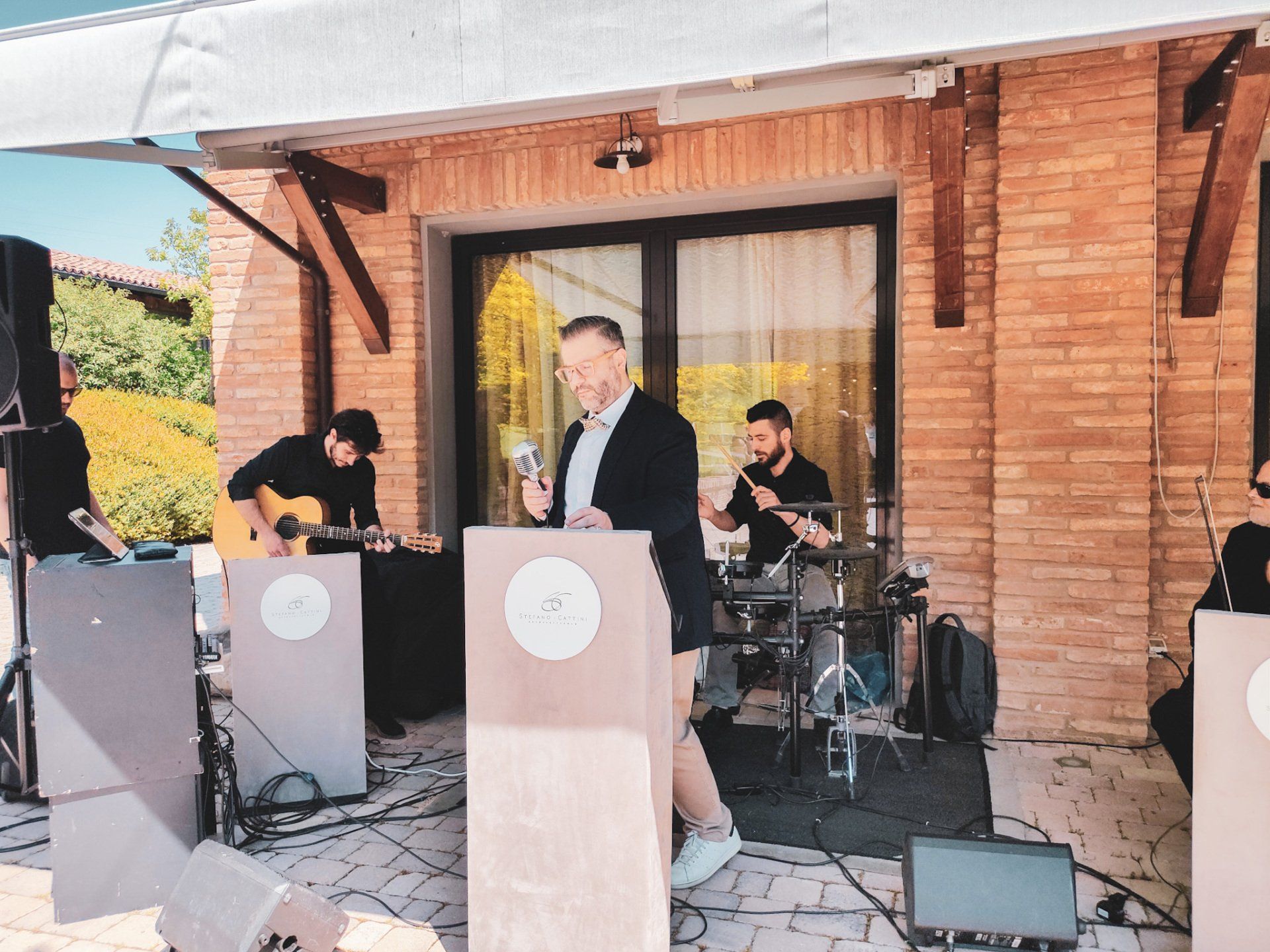 Mentre noi ci siamo occupati della cerimonia, un'altra parte del team ovvero Ylenia Ema e Luca si sono occupati di preparare l'evento in location, hanno allestito le 2 postazioni, una interna ed una esterna, e Ylenia ha completato il tutto allestendo "musique à la carte". Abbiamo iniziato a musicare l'aperitivo e già vedevamo gli ospiti battere il piedino. Davvero un bellissimo aperitivo. Il pranzo è stato poi magico, una grande partecipazione con un sacco di dediche anche molto divertenti (qui sotto ne trovate una minima selezione) e poi davvero dulcis in fundo alcuni discorsi davvero toccanti e una poesia scritta dal papà della sposa. Insomma un matrimonio davvero magico, un grandissimo capitale umano. Ma non finisce qui, nel dopo pranzo, prima della torta, il padre della sposa ha voluto cantare LA FIERA DI SAN LAZZARO (eravamo proprio vicinissimi a SAN LAZZARO DI SAVENA oltretutto) e io avrei mai potuto esimermi dal tradurre l'opera perdendo così l'occasione di sentire una perfetta pronuncia bolognese? SIA MAI!!! insomma ci siamo divertiti davvero tantissimo, è stato magico. Arriva poi un'altra sorpresa, un flash mob per gli sposi, davvero bello, insomma un turbinio di emozioni. All'inizio del Dj set ho colto l'occasione per ritirarmi in camper, per un filo di relax, nell'andare verso il camper, mentre mi allontanavo col mio trolley è scattato l'applauso, mamma mia che bello, la soddisfazione di aver fatto bene il proprio mestiere. Ricevere un applauso dove l'applauso non è programmato o dove non è di rito come in una platea teatrale è una soddisfazione ancora maggiore, lo dico sempre. Amo davvero molto questo lavoro, amo portare musica e componente umana in questi eventi così speciali, evviva.