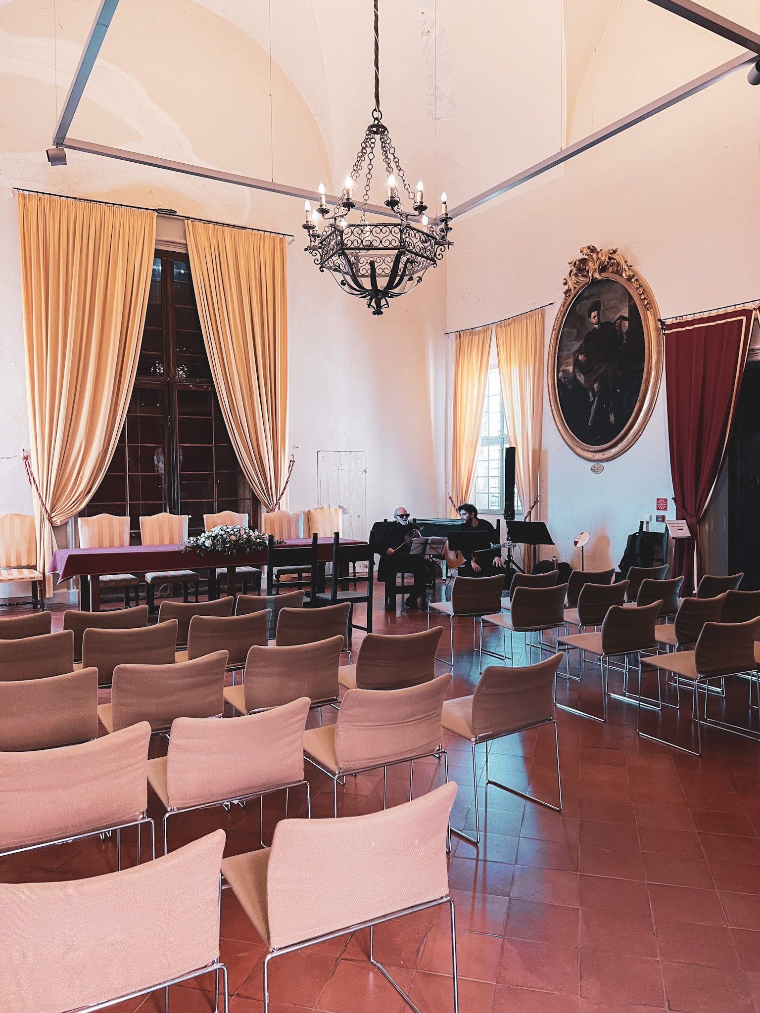 Eh qui il nostro "gancho", come avrebbe detto la grande Raffa ... è stato Riccardo, ovvero il fratello della sposa. Negli anni era capitato di musicare i matrimoni di alcune sue amiche (Fabiana, Alessandra...) e quando ha saputo che Federica di sarebbe sposata lui l'ha molto democraticamente obbligata a venire da noi a conoscerci. Credo fosse l'inizio del 2020 o al massimo la fine del 2019, l'ombra del covid non si intravedeva nemmeno. Il matrimonio doveva avvenire in aprile 2020, ma ovviamente fu rimandato al 2021... e in quel periodo del 2021 ancora non si poteva fare nulla, così venne rimandato per la seconda volta ma nel 2022 ci siamo riusciti! E' stato tecnicamente il secondo matrimonio di quest'anno (il primo che abbiamo fatto è stato a marzo) ma effettivamente il primo ad aprire una bellissima stagione. Ho deciso di inaugurare questa nuova rubrica con questo matrimonio perché devo dire che è stato il matrimonio perfetto con cui aprire la stagione, sotto tantissimi aspetti. E' stato davvero tutto stupendo, dalle persone invitate a tutti i vari momenti che si sono ricreati, dal divertente al tremendamente emozionante... tanto da far commuovere pure noi musicisti... ma non voglio dilungarmi troppo ora, mi tengo qualcosa anche per il dopo ... ora diamo un'occhiata ai...